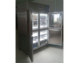 1、內膽采用鏡面不銹鋼,外殼也為不銹鋼材質。箱內擱板間距可調,擱板支架可以自由裝卸,便于箱內的清洗工作。